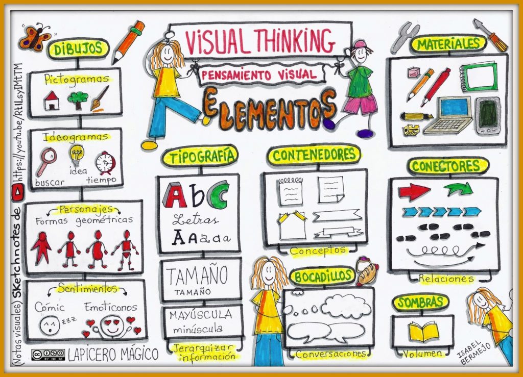 Como ves se trata de una técnica que recuerda mucho a los modelos de aprendizaje educativo que se usan con los niños, sin embargo su poder con los adultos no es menor. A pesar de ello ha sido olvidado por estar vinculado a esta etapa de nuestra edad, pero debemos tener en cuenta que es mucho lo que nos puede aportar si sabemos usarlo adecuadamente y para ello os presentaremos algunas técnicas y herramientas para poder aprovechar al máximo el visual thinking.