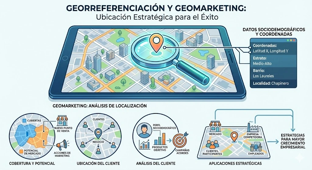 - Ubicación de clientes potenciales para desarrollo de estrategias comerciales.